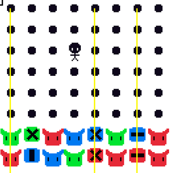 - The blocks with horns are mobs, the blocks with shapes/directions are bombs